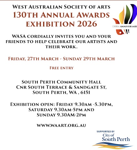 I will be exhibiting some of my artwork in the annual WASA exhibition.